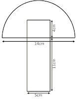 10) Cut a circle with a diameter of 14cm from green card and cut this in half across the middle. Stick the two halves of the circle together sandwiching 4cm of the narrow edge of the piece of card, from the previous stage, in between (see diagram 7 below).